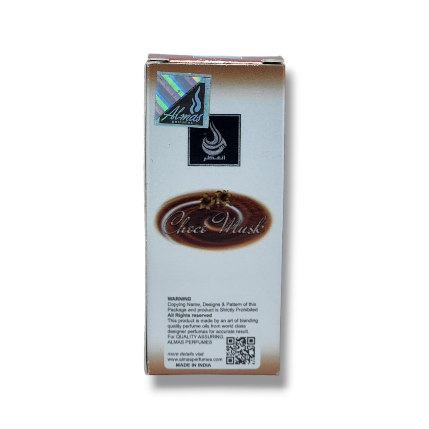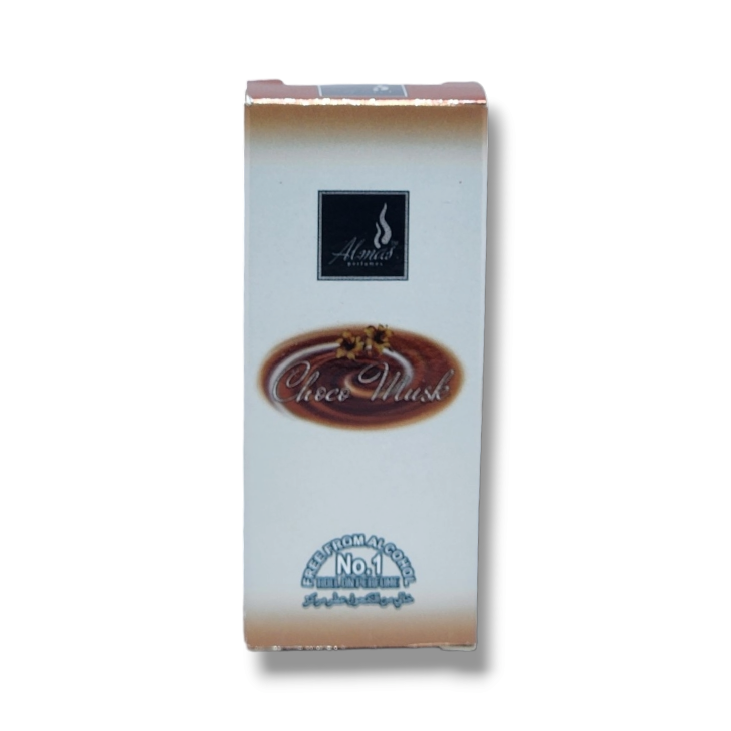 Almas Choco Musk Perfumes Roll-On 6ml is a delightful blend of rich chocolate and warm musk that creates a sweet yet sensual fragrance. This alcohol-free attar is crafted for both men and women, offering a comforting aroma that lingers all day. Compact and easy to use, this 6ml roll-on perfume combines the sweetness of cocoa with creamy vanilla and soft musk notes for an irresistible scent experience.