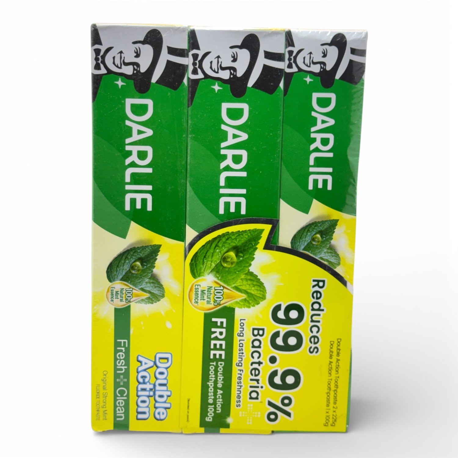 Darlie Toothpaste Double Action Twin Pack is designed to provide complete oral care with the combined benefits of cavity protection and long-lasting freshness. Its effective dual-action formula helps remove plaque, strengthen teeth, and protect gums while keeping your breath fresh throughout the day. The twin pack offers added value, making it ideal for family use and daily dental hygiene.