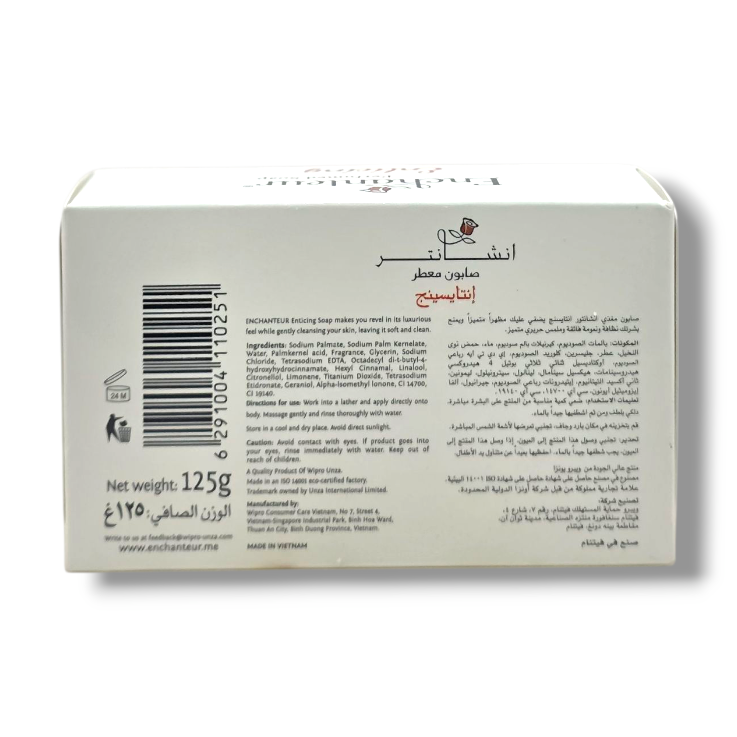 Enchanteur Perfumed Alluring Soap pampers your skin with a luxurious fragrance that combines the sensual notes of Tuberose and Gardenia. It cleanses gently while leaving your skin soft, smooth, and delicately scented. Enjoy a romantic bath experience that keeps you fresh and confident all day long.