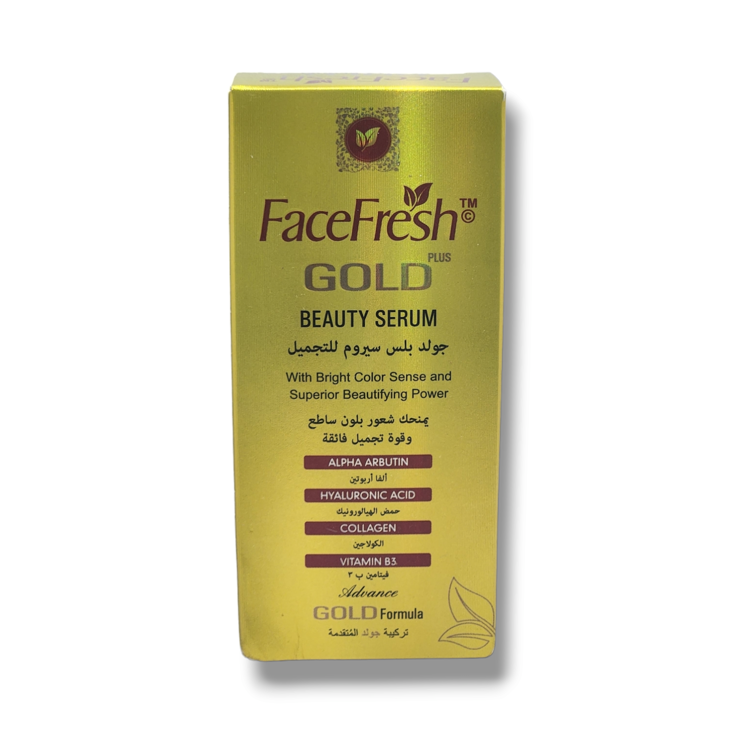 Face Fresh Gold Plus Beauty Serum 10ml is an advanced brightening and nourishing formula enriched with gold extracts to rejuvenate dull and tired skin. This serum helps reduce dark spots, fine lines, and blemishes while improving skin texture and radiance. Its lightweight formula absorbs quickly, leaving your skin soft, glowing, and visibly youthful. Perfect for daily skincare routines to maintain a flawless and luminous complexion.