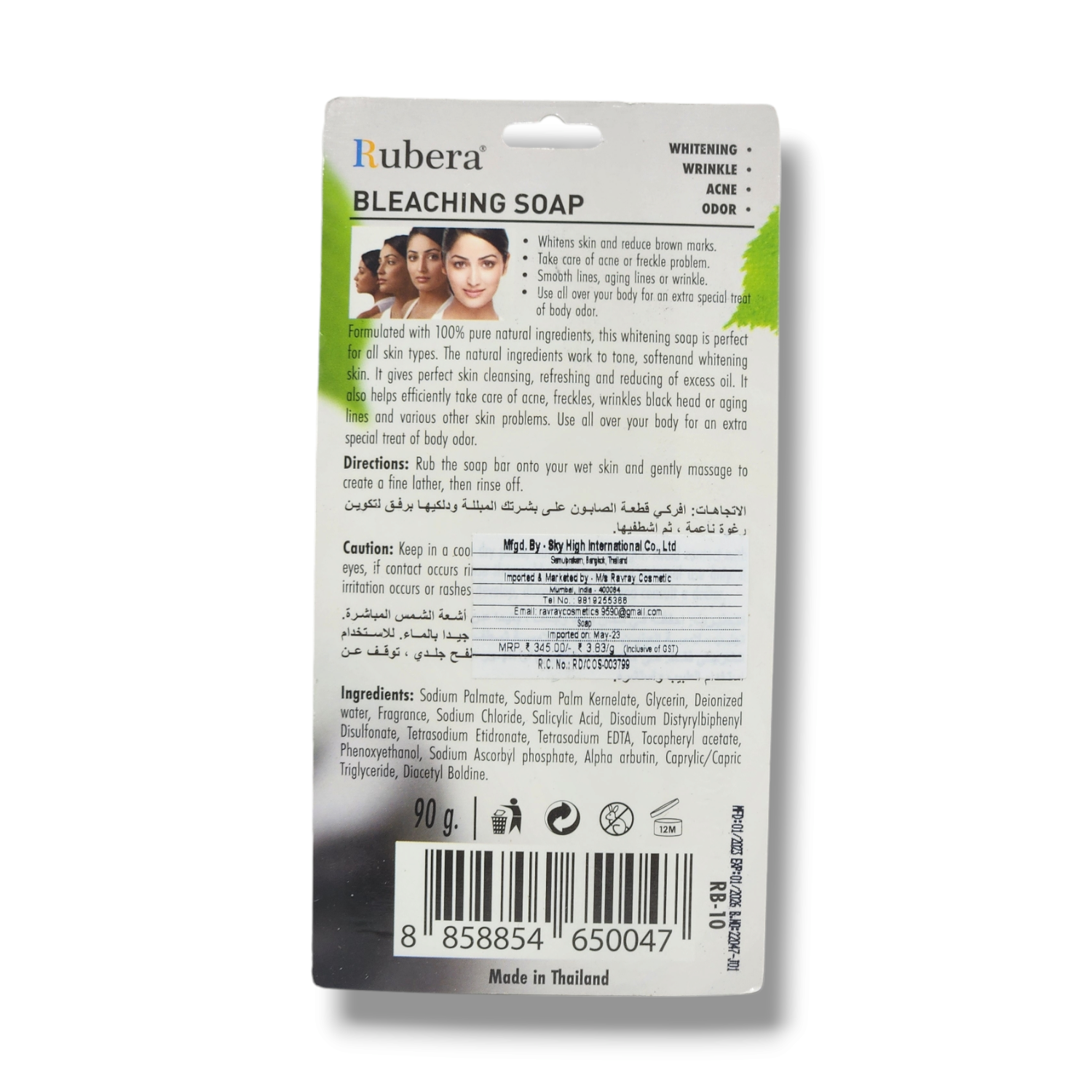 • Usage / Benefit: Bleaching and deep-cleansing whitening soap