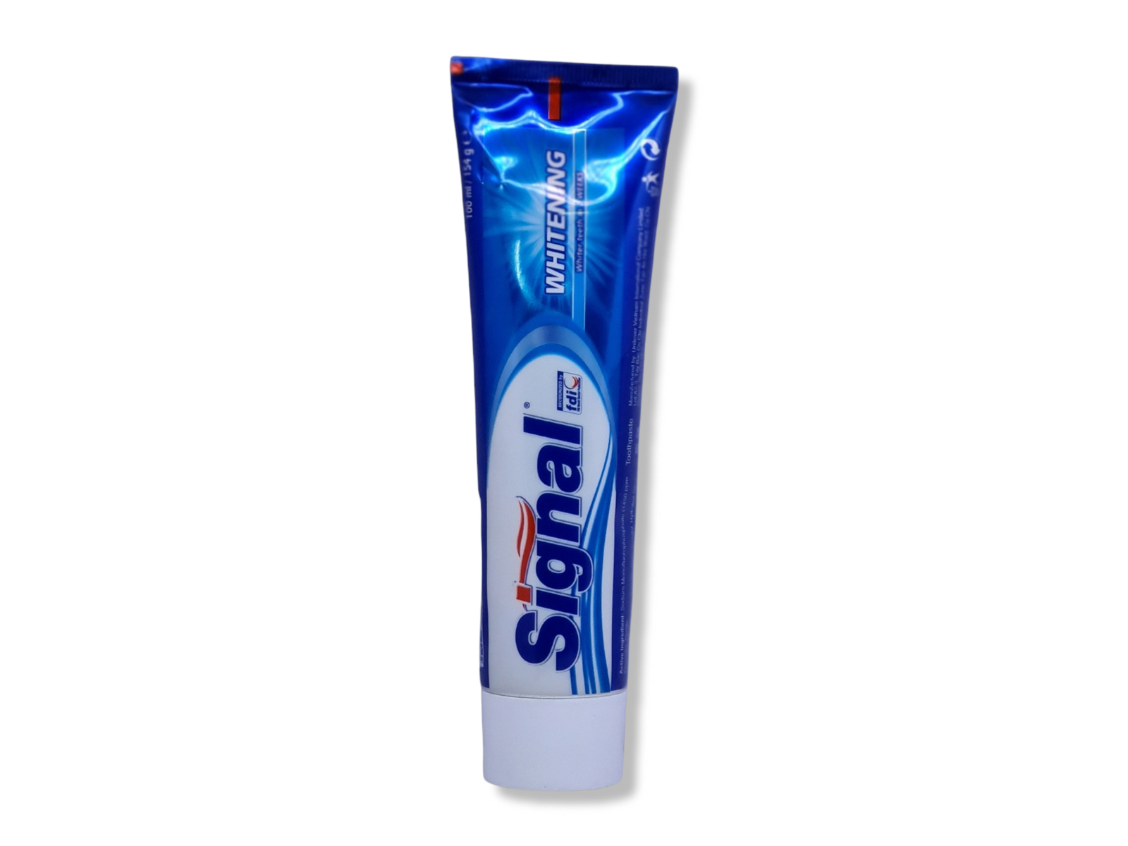Achieve a brighter, whiter smile with Signal Whitening Toothpaste 100ml. Formulated with advanced whitening agents, it gently removes surface stains while protecting enamel for daily use. Its refreshing mint flavor keeps your breath fresh and your teeth naturally radiant.