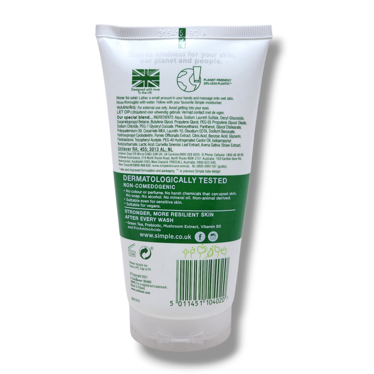 Simple Regeneration Age Resisting Facial Wash 150ml is specially formulated to cleanse the skin while helping reduce early signs of aging. Its gentle yet effective formula removes impurities, dirt, and excess oil without drying the skin. Enriched with regenerating ingredients, it promotes a smoother, firmer, and revitalized complexion for daily use.