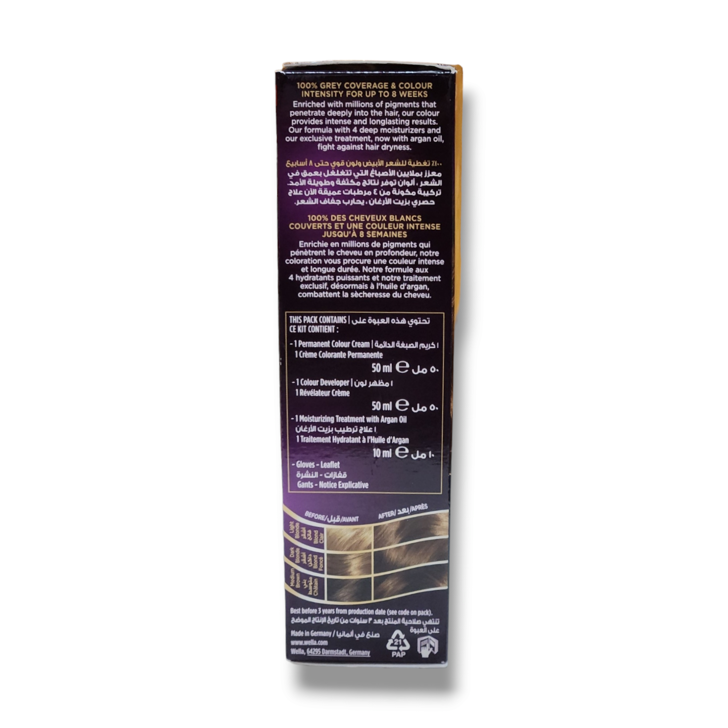 Usage / Benefit: Permanent dark blonde hair color with complete grey coverage and radiant shine