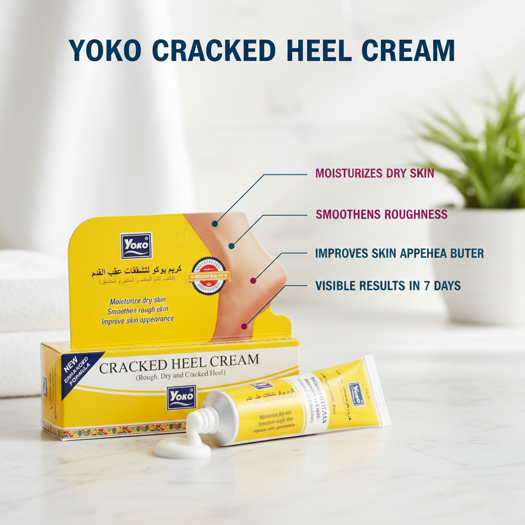 Yoko Cracked Heel Cream is specially formulated to repair dry, rough, and cracked heels. Its deeply moisturizing formula helps soften hardened skin, reduce heel cracks, and restore smoothness with regular use. Enriched with nourishing ingredients, this cream penetrates deeply to hydrate and rejuvenate dry feet, leaving them soft, healthy, and comfortable. Ideal for daily foot care and suitable for all skin types.